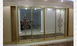Широкая цветовая гамма алюминиевых профилей и материалов для каркасных конструкций, а также большой выбор материалов, используемых для наполнения дверей-купе (витражи и фотопечать, пескоструйные рисунки на стеклах и зеркалах, ротанговые и бамбуковые полотна, цветные стекла), позволяет максимально адаптировать цветовое решение шкафа к вашему интерьеру.