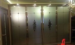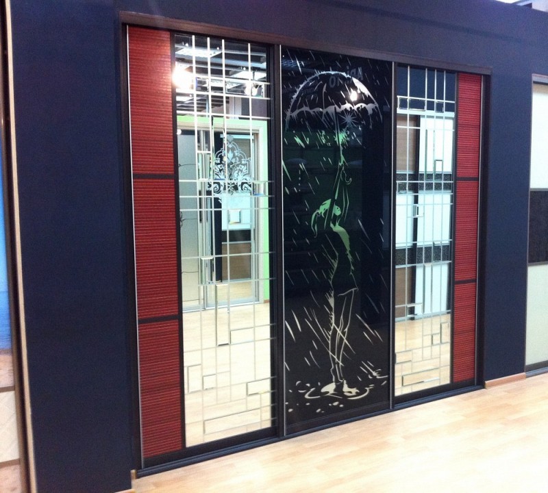 Широкая цветовая гамма алюминиевых профилей и материалов для каркасных конструкций, а также большой выбор материалов, используемых для наполнения дверей-купе (витражи и фотопечать, пескоструйные рисунки на стеклах и зеркалах, ротанговые и бамбуковые полотна, цветные стекла), позволяет максимально адаптировать цветовое решение шкафа к вашему интерьеру.